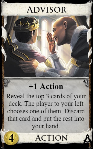 | Berater | Pioche 3 cartes, mais le joueur à gauche en choisit une à défausser. |